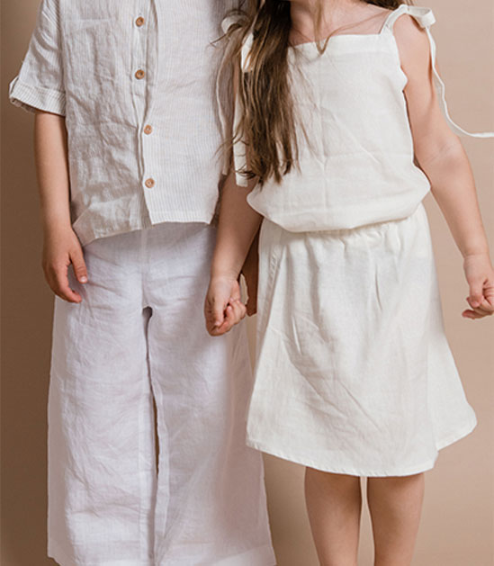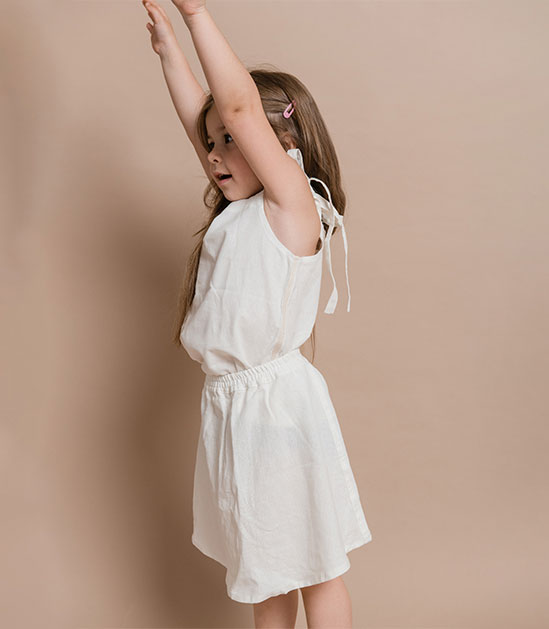 Freedom to play and explore is essential. Every step is as light as a feather. Every idea is seemingly possible during the long Summer afternoons. This A-line skirt provides enough space and lightness for every step your little explorer takes. It features an extra wide durable waistband. Pair it up with an Essenza tie stripe top.