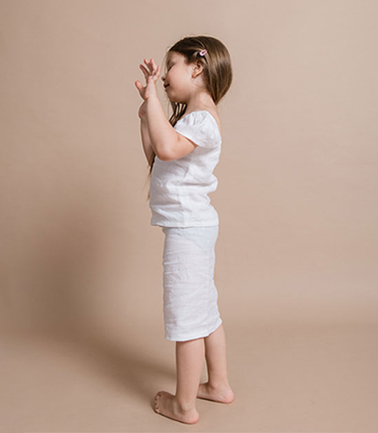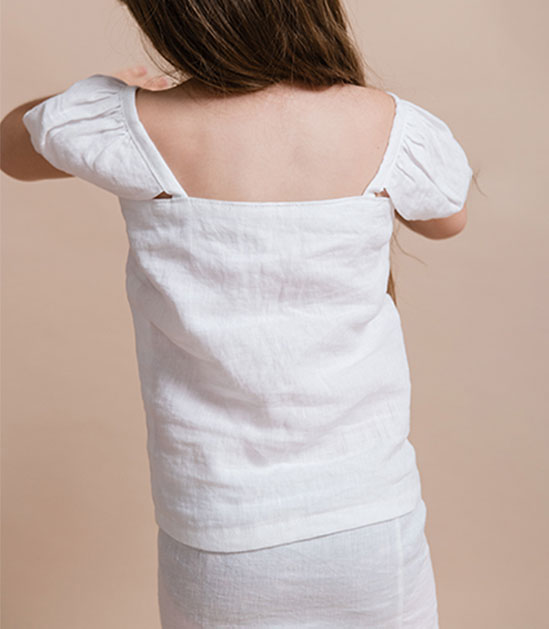 The sound of waves crashing on the shore. The chills on the skin as the breeze becomes stronger. This ruffle top is inspired by the windy day at the beach — it might not be the best day to take a swim, but it's great for playing with pebbles and sand. The shirt features strips with ruffles, giving it a touch of simple elegance. Pair it with Bianca straight H-line skirt.