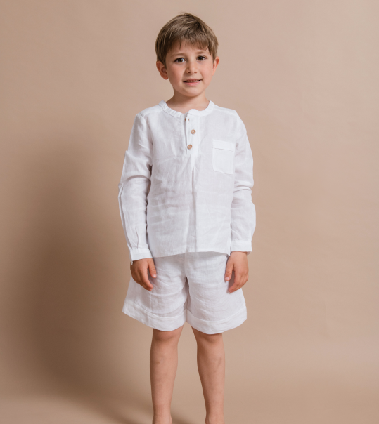 Ljeto čine mala, jednostavna zadovoljstva. Osjećaj kamenčića pod nogama. Listovi trave koji češkaju nogice. Ove jednostavne kratke hlače s elastičnim pojasom idealne su za dan na plaži ili popodnevni piknik. Uparite ih s Mariner košuljom kratkih rukava ili Mariner košuljom dugih rukava i stvorite lepršav komplet za svog malog istraživača.