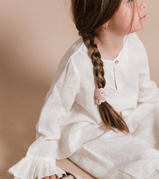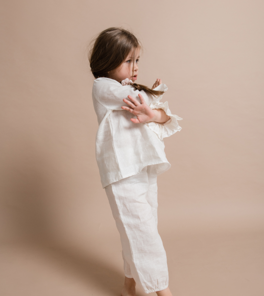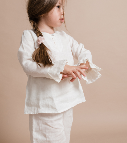 Za idilične ljetne dane potrebna je odjeća koja izgleda kao da je iskočila iz bajke o princezi koja je odlučila napustiti dvorac i istražiti prirodu. Ova majica omogućuje vašoj djevojčici slobodno kretanje i igru dok otkriva nove stvari na plaži ili u vrtu. Košulja je idealan izbor za prozračne ljetne večeri. Ima nabrane rukave, a sa Solstice hlačama s elastičnim rubom čini idealan komplet.